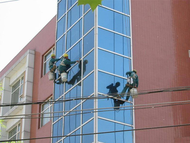 3、擦玻璃:先用毛巾把玻璃框擦拭干净,再用涂水器沾稀释后的玻璃水溶液,均匀的从上到下涂抹玻璃,有顽固的污渍用铲刀清除干净,再重复以上工序后用刮子从上到下刮干净,用干毛巾擦净框上留下的水痕,玻璃上的水痕用机皮擦拭干净。